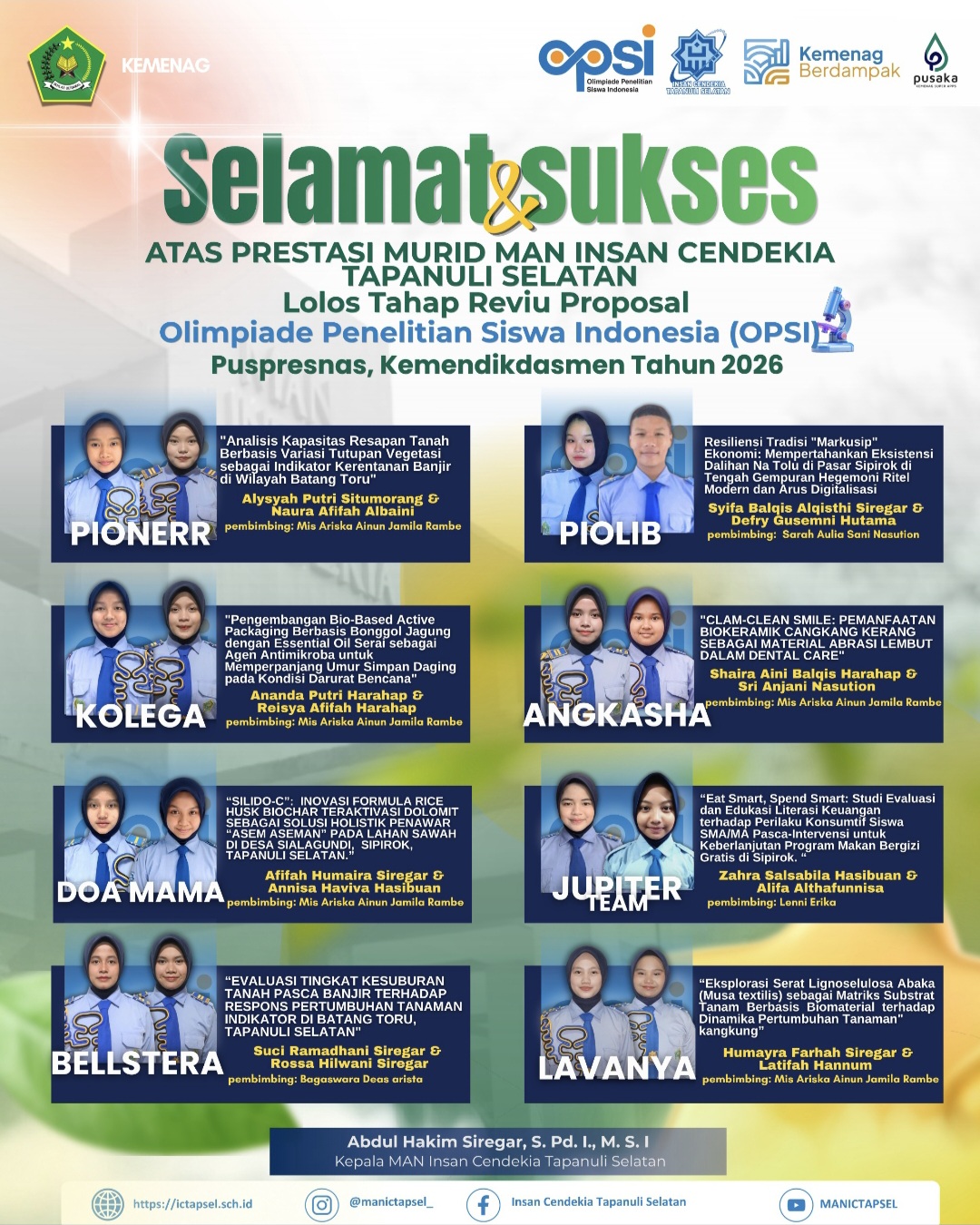Terdepan dalam setiap kegiatan riset, perlombaan dan pendampingan riset.